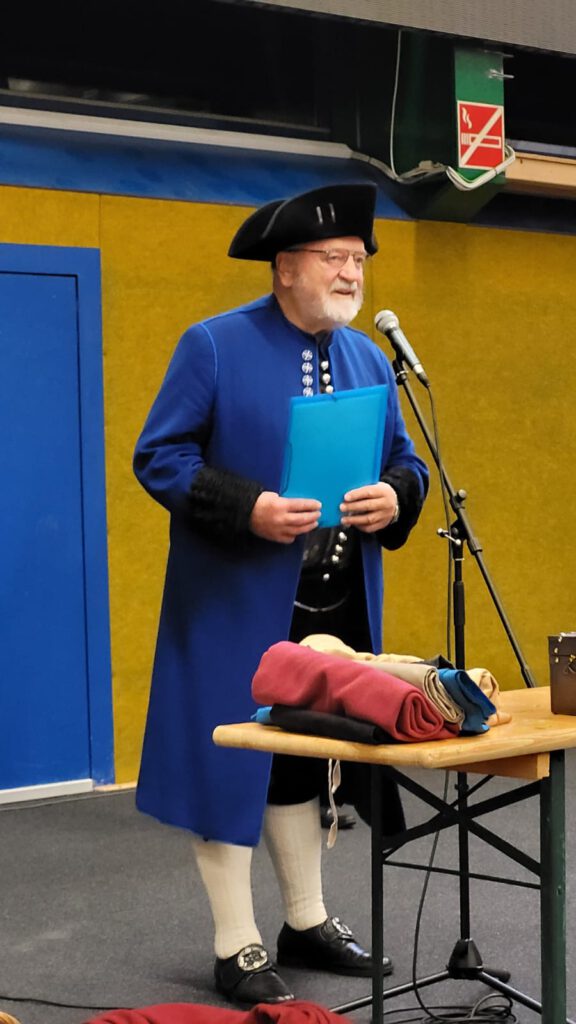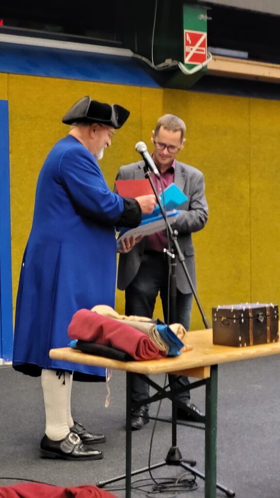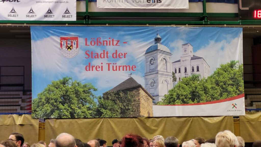 Die Dankeschön-Veranstaltung konnte sich sehen lassen. Es gab ein Buffet vom Feinsten, der Bürgermeister bedankte sich bei den Mitstreitern und sogar etwas Kultur wurde den Anwesenden in Form eines Films über den vergangenen Salzmarkt geboten. Der Vorsitzende des Vereins „Alte Salzstraße e.V.“ ließ es sich nicht nehmen, ein paar Worte an die Anwesenden und den Oberbürgermeister zu richten und überbrachte im Hallorenfestkleid die Grüße der Vereine. Er verlas einen Brief von Egbert Geyer, dem amtierenden Oberbürgermeister von Halle, der herzliche Dankesworte an Lößnitz richtete. Etwas merkwürdig war, dass der Vorstand der Halloren keine Grußworte übermittelte, obwohl der erste Regent eigentlich auf dem diesjährigen Salzmarkt anwesend war. So standen die Halloren in Lößnitz ohne Hallorengruß da, denn ohne Genehmigung des Vorstandes dürfen sie einfach nichts sagen. Nun, so sei es, aber auch das macht den Unterschied zu Lößnitz aus.