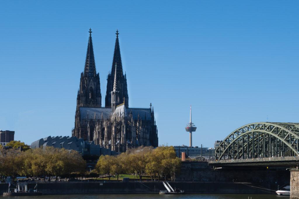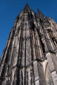 Ich bin beeindruckt von der schieren Größe dieser Kathedrale, von den Figuren, die diese Kirche an den Portalen bewachen, von den bunten Glasscheiben, den vielen Kunstwerken innerhalb der Kirche, dem goldenen Schrein der Heiligen Drei Könige (die in Mailand gestohlen wurden im 12. Jahrhundert), aber auch zutiefst bedrückt, dass der Glaube (der friedlich sein sollte) immer noch Kämpfe bis zum letzten Tropfen provoziert. Jesus ist längst ausgeblutet. Der Dom steht.