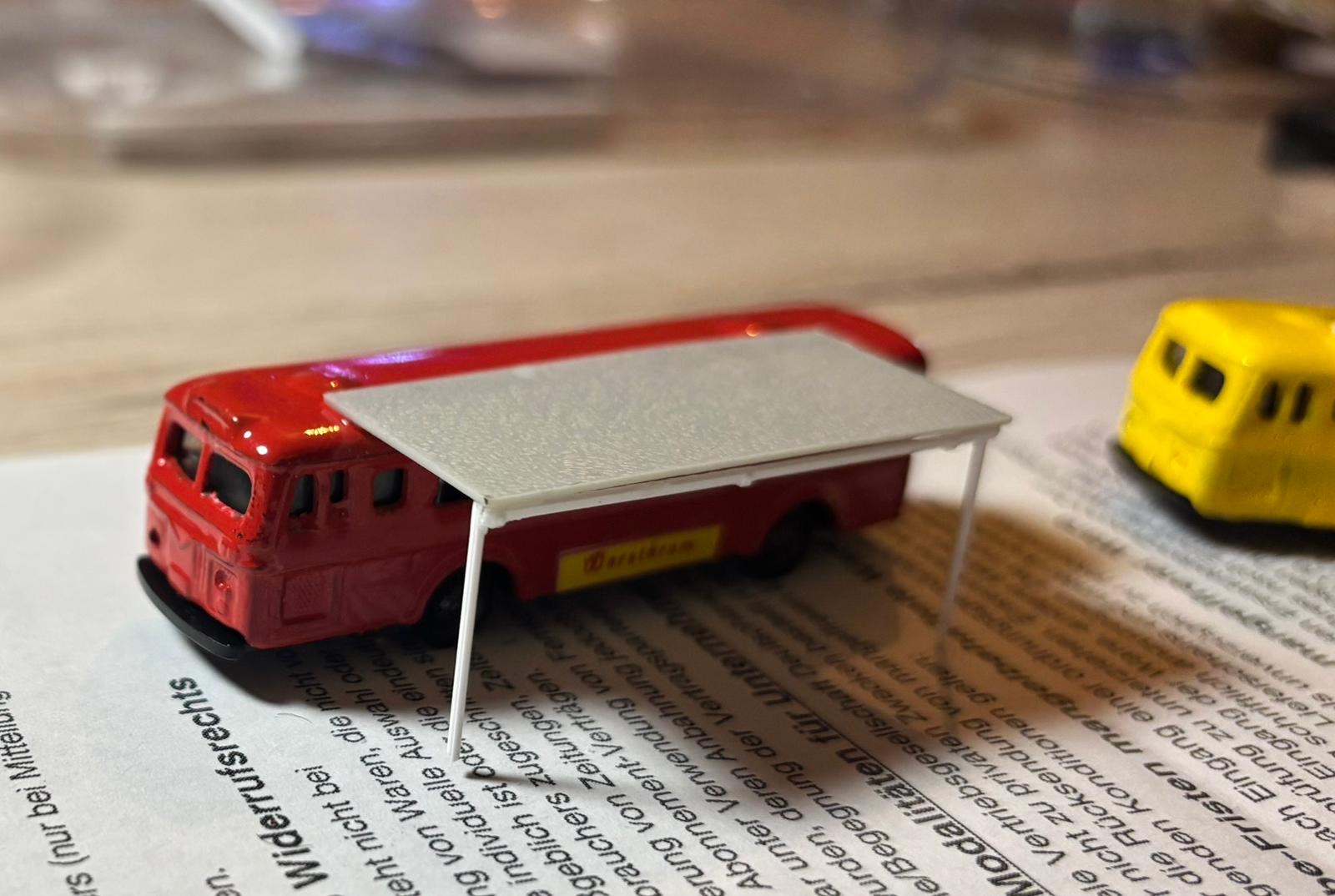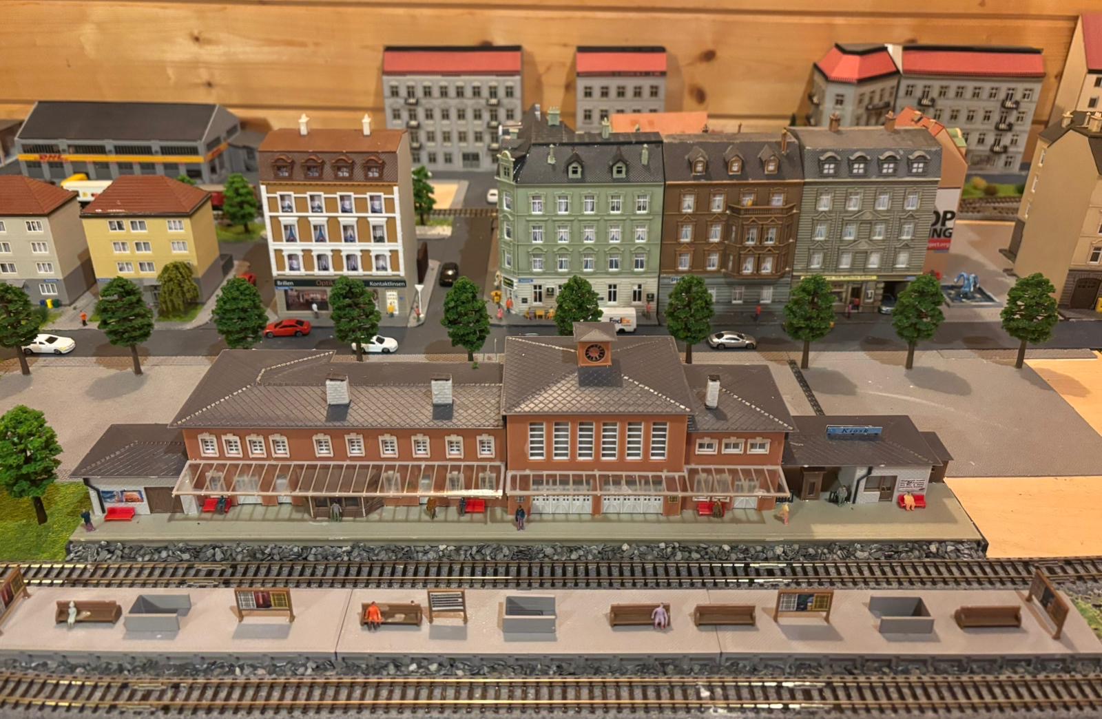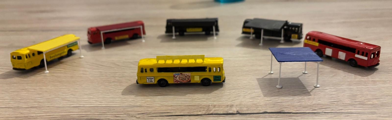 Schön, wenn man ein Gourmet ist und gerne kocht. Das freut die Frau. Besonders ist es aber, wenn man seine Leidenschaft auch in das Hobby Modelleisenbahn umsetzen kann. Geht nicht, gibt es nicht. Denn das kann er, der Christian, und bastelt sich aus alten Bussen ein Foodfestival. Er befreit die Busse vom alten Lack, lackiert sie neu, gibt ihnen ein Dach und ordnet sie im Halbkreis an. Das freut auch die Frau, kann sie doch in der Bauphase mit ihrer Tochter am Fernseher zocken. Manchmal baut sie hier und da mit, ist aber mehr Zuschauerin und hat sich der Produktion von Kerzen gewidmet. So schlemmt er mit ihr und sie leuchtet ihm heim. Das bekommt beiden gut. Christian ist ein Erfinder in Sachen Eisenbahnplatte. Es muss ja nicht jede Kleinigkeit gekauft werden, ein bisschen Individualität tut gut. Da staunt der Freund aus Halle und wartet auf die nächsten Bilder, und ein Artikel zu schreiben ist seine Leidenschaft.
