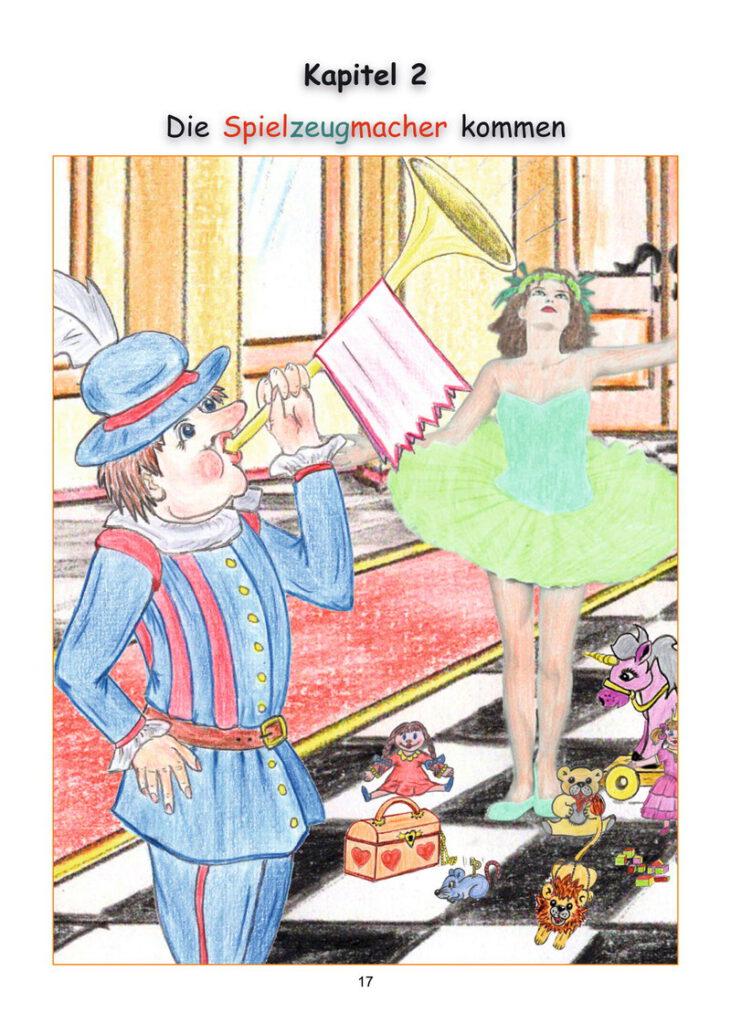 Sämtliche Hauptdarsteller gibt es als Realfiguren im richtigen Leben. So ist die Prinzessin Lele in Wirklichkeit eine Sophie, das Königspaar sind der Vorstand des besagten Vereins und selbst die Tiere wie der Hund Goja, das Pferd Anouk und Kater Keks gibt es im richtigen Leben. Na ja, bis auf Keks, der inzwischen das Ganze aus dem Katzenhimmel begutachtet. Weitere Figuren des Buches, wie der Zauberer Asgard, die Stadtwache, der Freund der Prinzessin, sind ebenfalls fotografierte „Modelle“ aus dem Freundeskreis der Buchautoren. Das Fotografieren war das eine, mühsam waren die Grafiken. Königin Kunterbunt, mit richtigem Namen Sandy, kolorierte alle in Zeichnungen umgewandelten Realfiguren zusammen mit Prinzessin Lele, also ihrer Tochter Sophie. Die Oma von Sophie machte sich daran, die Hintergründe zu entwerfen und zu kolorieren (über 180 Einzelzeichnungen). Einige Hintergründe wurden vom Textautor des Buches mithilfe eines 3D-Programms entworfen. Einzig die drei Feen wollten nicht so recht gelingen. Zwei Foto-Modelle wurden „verbraucht“, führten aber nicht zum gewünschten Erfolg. Also bemüßigte der Buchautor wiederum sein 3d Programm (DAZ 3D) und kreierte eigene Farbfeen. Nach Texterei und Malerei begann das große Korrigieren. Texte wurden umgeworfen, neu geschrieben, einige Stellen waren zu lang, einige nicht kindgerecht. Sigrid, Mutter von Sandys Lebenspartner, sprang als Lektorin ein und fand Fehler, die wahrscheinlich sonst niemand gefunden hätte.