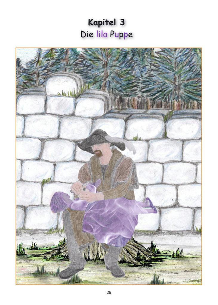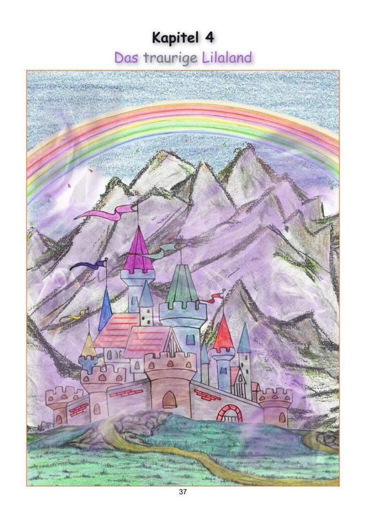 Doch, jetzt ein wenig zu unserem Märchen, „Die lila Prinzessin“. Es spielt im Kunterbuntland, wo der kugelrunde König Kunterbunt mit seiner wunderschönen und weisen Königin Helena Kunterbunt herrscht. Ihre Tochter Lele hat als Prinzessin ein wunderschönes Prinzessinnenleben und liebt ihr Pferd Anouk, ihre Katze Keks und ihren schwarzen Hund Goja sehr. Sie freut sich auf ihren anstehenden Geburtstag, wo die Spielzeugmacher des Landes ihr das schönste Spielzeug vorstellen wollen. Und Lele darf sich zum Geburtstag ein paar Spielzeuge auswählen. Doch sehr zum Unmut ihrer Mutter und ihres Lehrers, dem Frosch und Minister für Finanzen, sowie zum Entsetzen der Farbfeen, wird Lele gierig und stürzt das Land in einen lila Fluch. Da ist guter Rat teuer. Helfen kann wohl nur Asgard, der geheimnisvolle Zauberer, der eine seltsam magische Verbindung zur Königin hat. Lele weiß das aber nicht und muss handeln, um ihren Fehler rückgängig zu machen. Das wird zum größten und gefährlichsten Abenteuer ihres Lebens. Ob es ihr wohl gelingt?