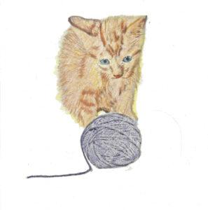 Meine Katze Keks. Sie liebt es mit Wollknäuel zu spielen. Warum sie so heißt, könnt ihr in meinem Buch lesen.
