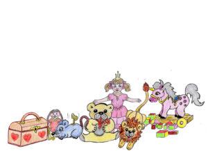 Mit dem Spielzeug fing alles an. Es war schuld an dem lila Nebel, der so fürchterlich für unser Königreich war. Lest meine Abenteuer und schreibt mir, wie es euch gefallen hat. Im Buch sind auch Ausmalbilder. Die könnt ihr euch aber auch hier herunterladen und mir schicken. Ich würde mich sehr freuen.
