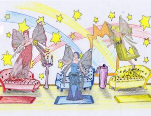 Unsere drei Feen Linaria, Abelia und Dahlia, die für die Farben im Kunterbuntland sorgen. Mit denen habe ich immer viel Spaß, vor allem bei Modenschauen.
